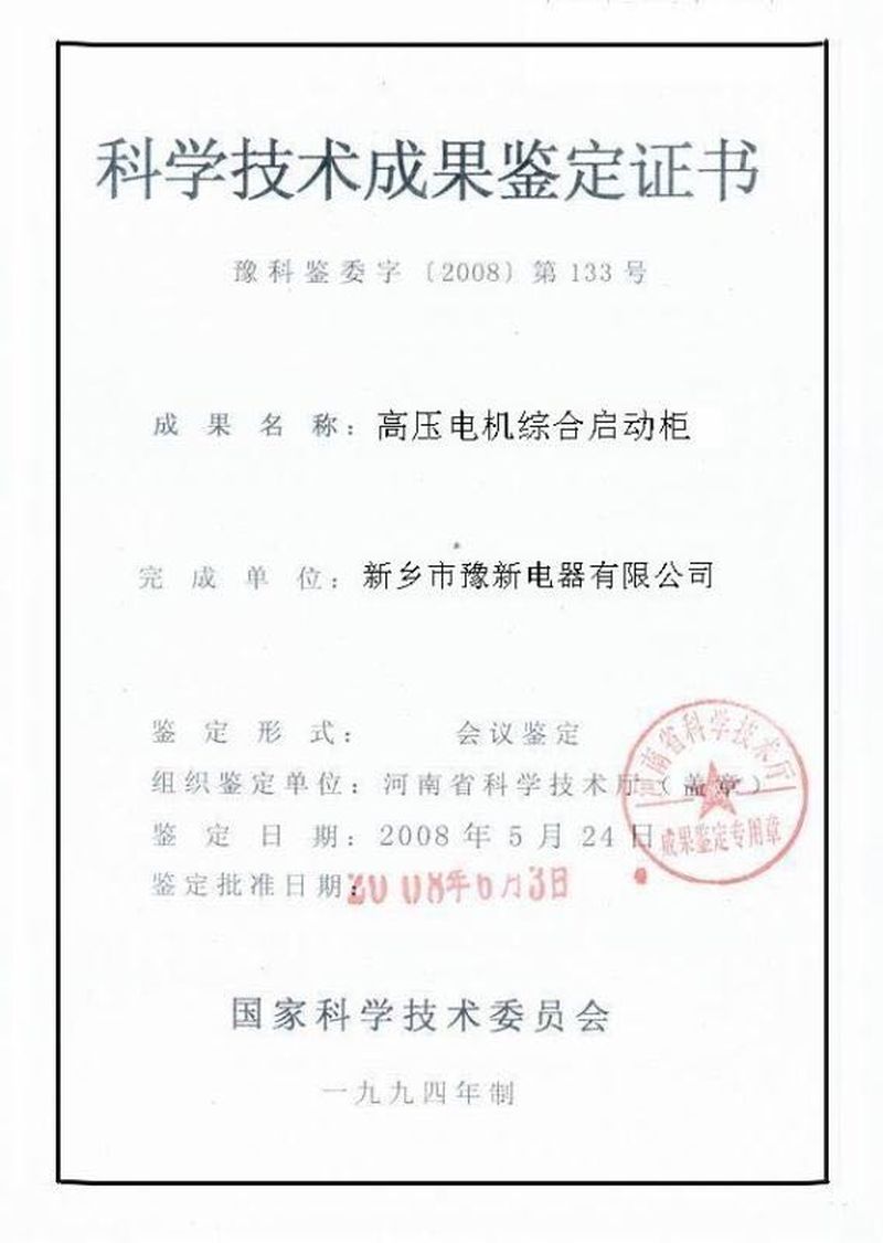 企業(yè)有高新科技人員,為新鄉(xiāng)市電機(jī)啟動(dòng)柜研究中心,GG1A型﹑KYN28-10KV高壓配電柜、高壓液體啟動(dòng)柜曾獲國(guó)家適用新型專利,專利號(hào)ZL2006200324849
